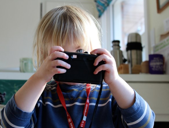 The little photographer, Desmond Dale, 3, wants a picture of the big photographer, on Sunday, Jan. 15, 2012. (Andrea Connell/SOMAD News)