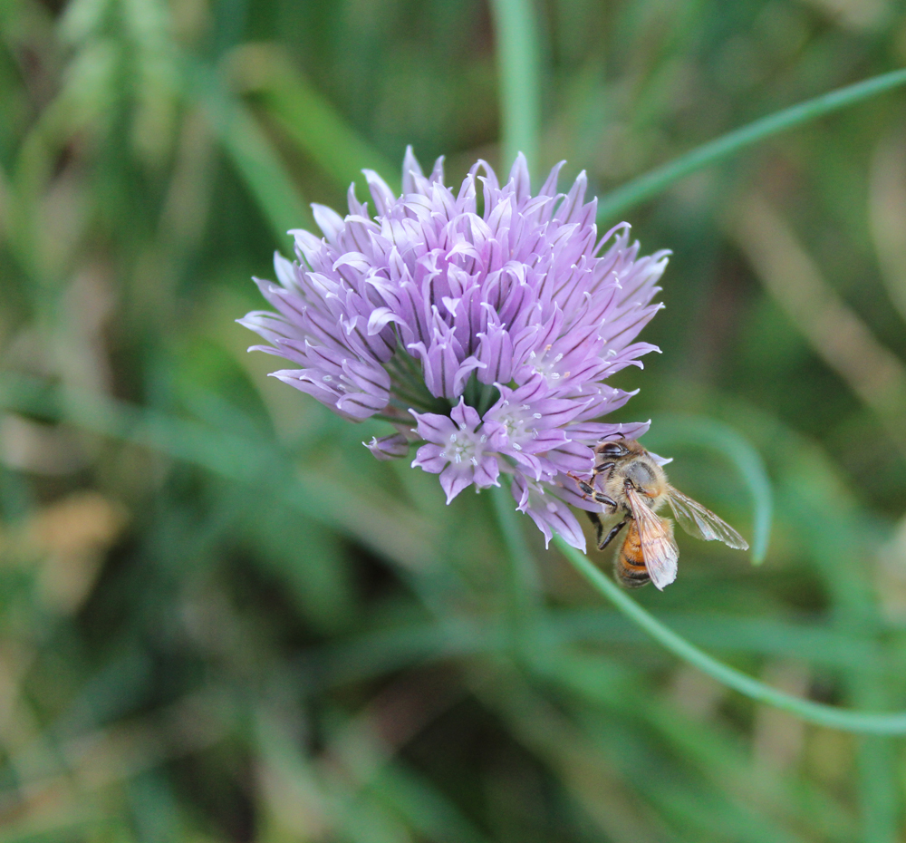 “Bees like chives,” says my neighbour Judy. Bees are an important indicator for ecosystem health, it’s a good sign to see them in the garden. (Andrea Connell)