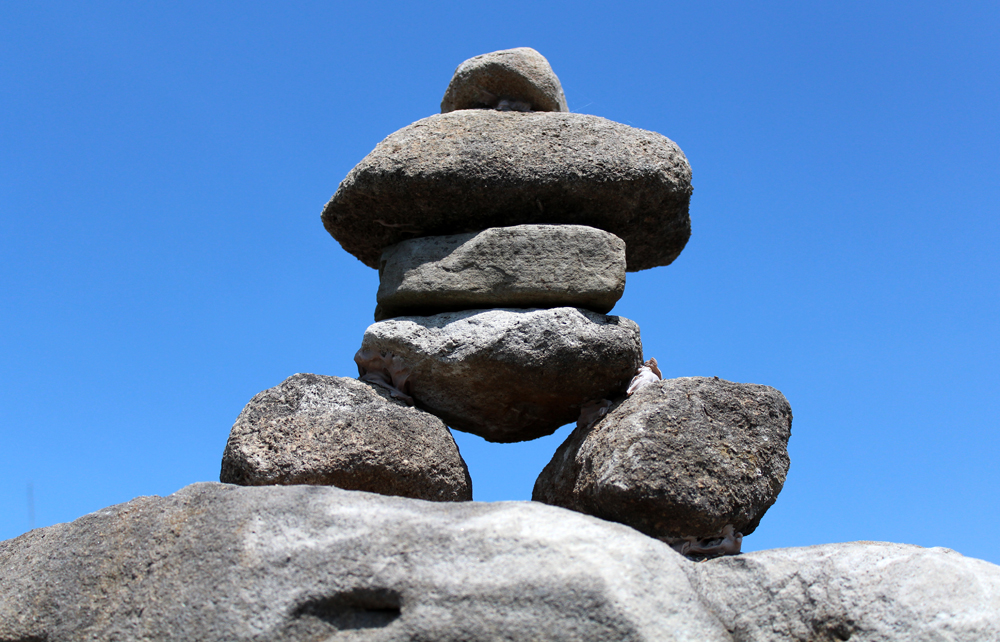 Inukshuk means in the likeness of humans or somthing similar to that. This one is watching over the fields on Second Line, Moffat, Ont. (Andrea Connell)